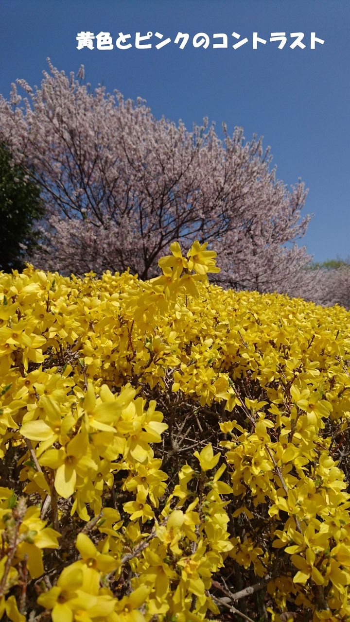 また、桜以外にも黄色く鮮やかに咲き誇る「レンギョウ」も綺麗やったで!