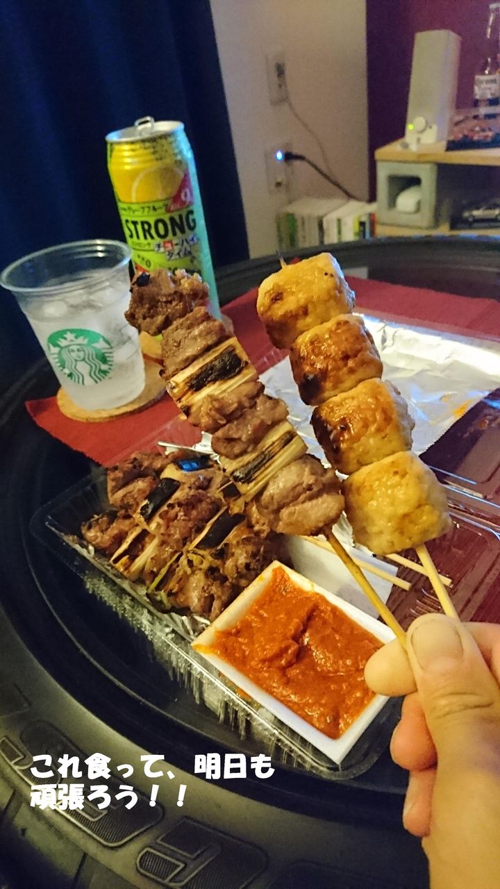 夕飯は焼き鳥(カシラ)を食べながら、グイッと一杯。