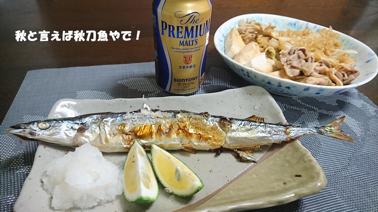 夕飯は先程の魚市場で買った秋刀魚とオカンお手製のすき焼。