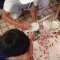 激しく降り注ぐ雨の中、この地でカニとエビが美味い和食処があると両親が