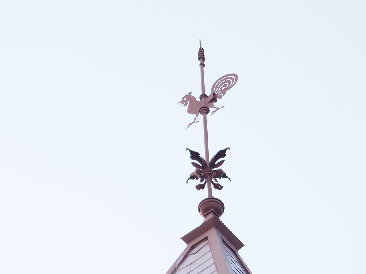 建物の屋根には名前の由来である風見鶏が見えます。