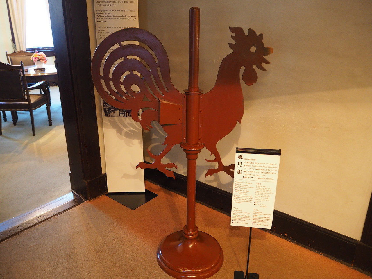 階段を上がったホールに風見鶏を発見。