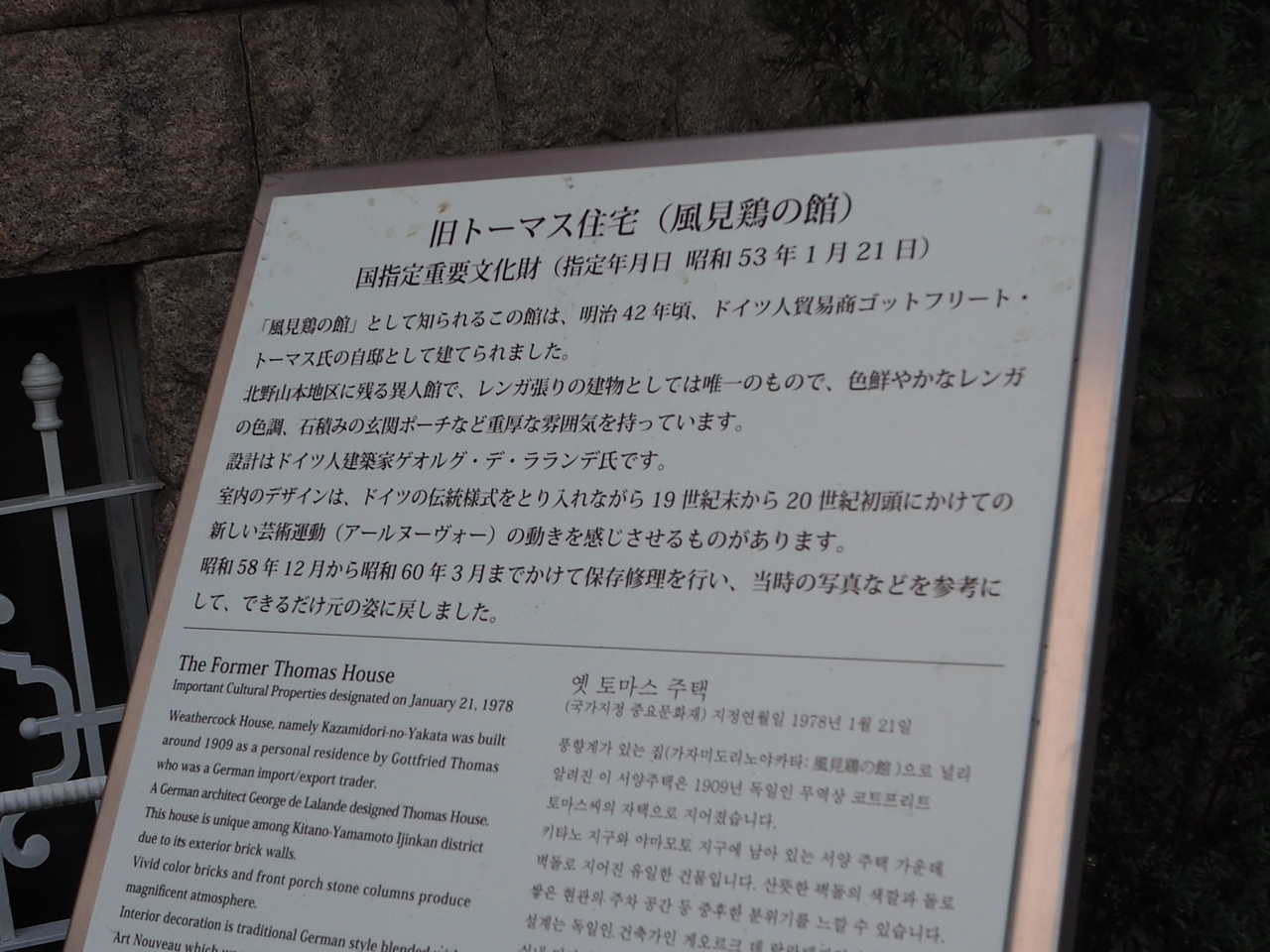 1909年にドイツ人貿易商のゴットフリート・トーマスさんの住居として建てられたとのこと。