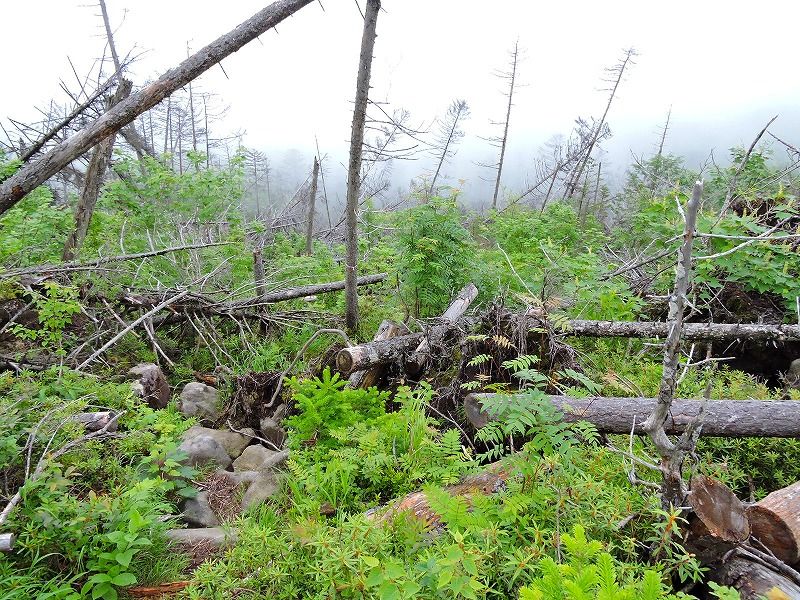 ガスの狭間から東雲湖がお目見え