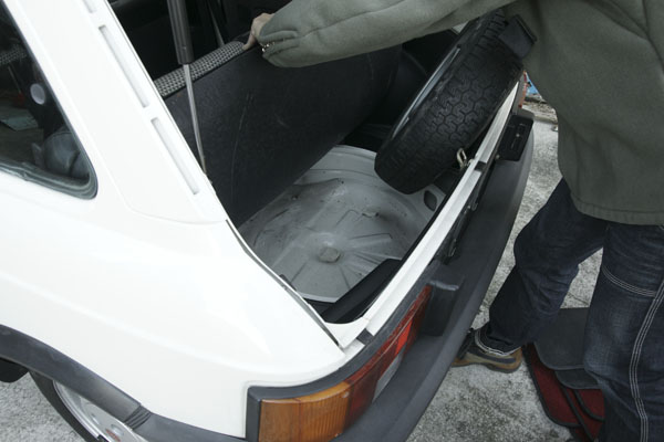 白ビのスペアタイヤは未使用品。ビアンキの錆び穴の定番場所、スペアタイヤ