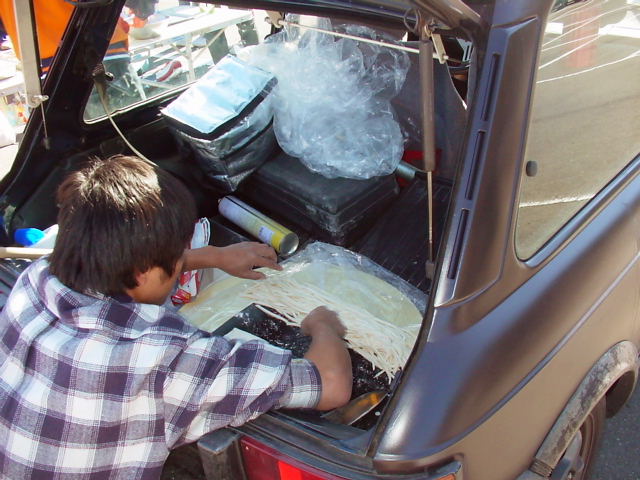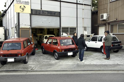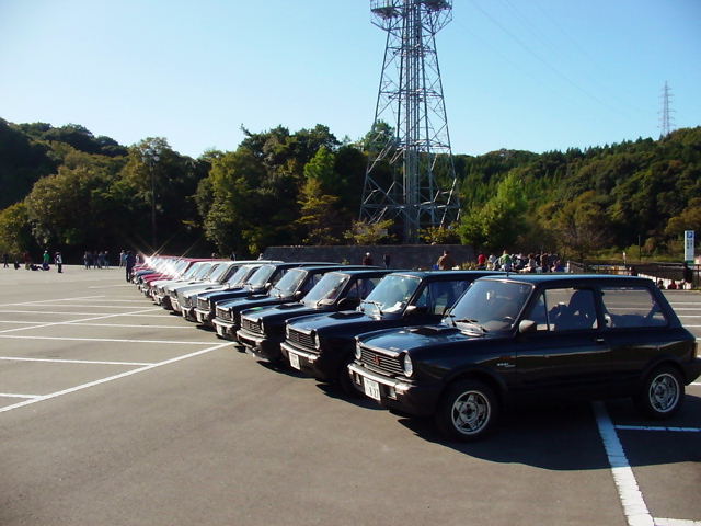 の3台が並び、ボンネット、リアゲート、をあけて、これぞれの個体の改造歴チ