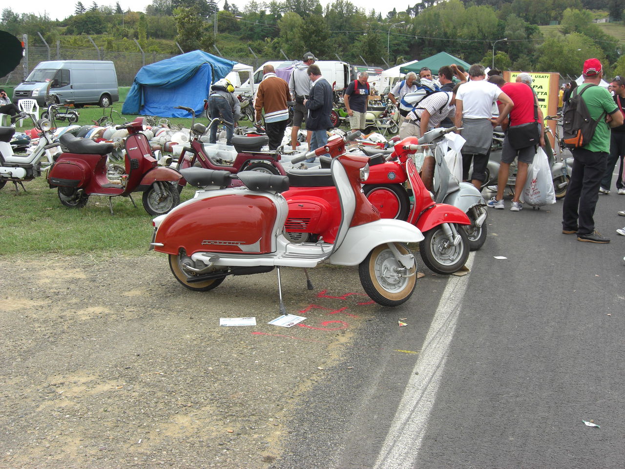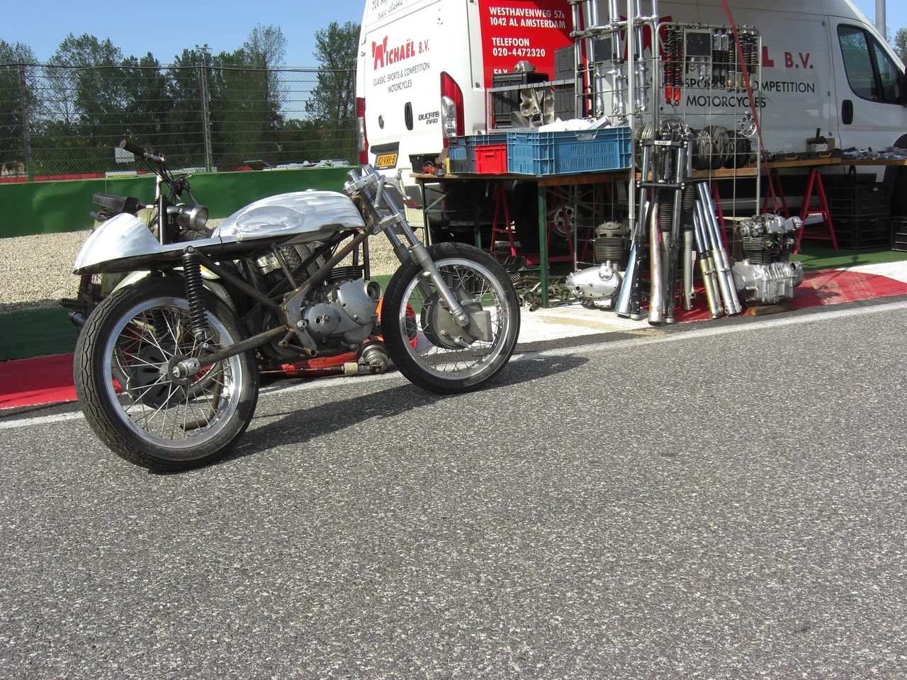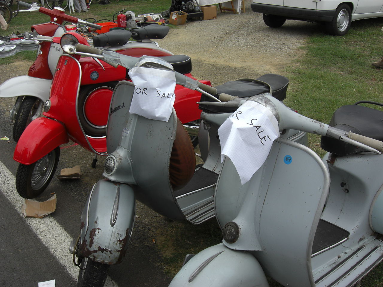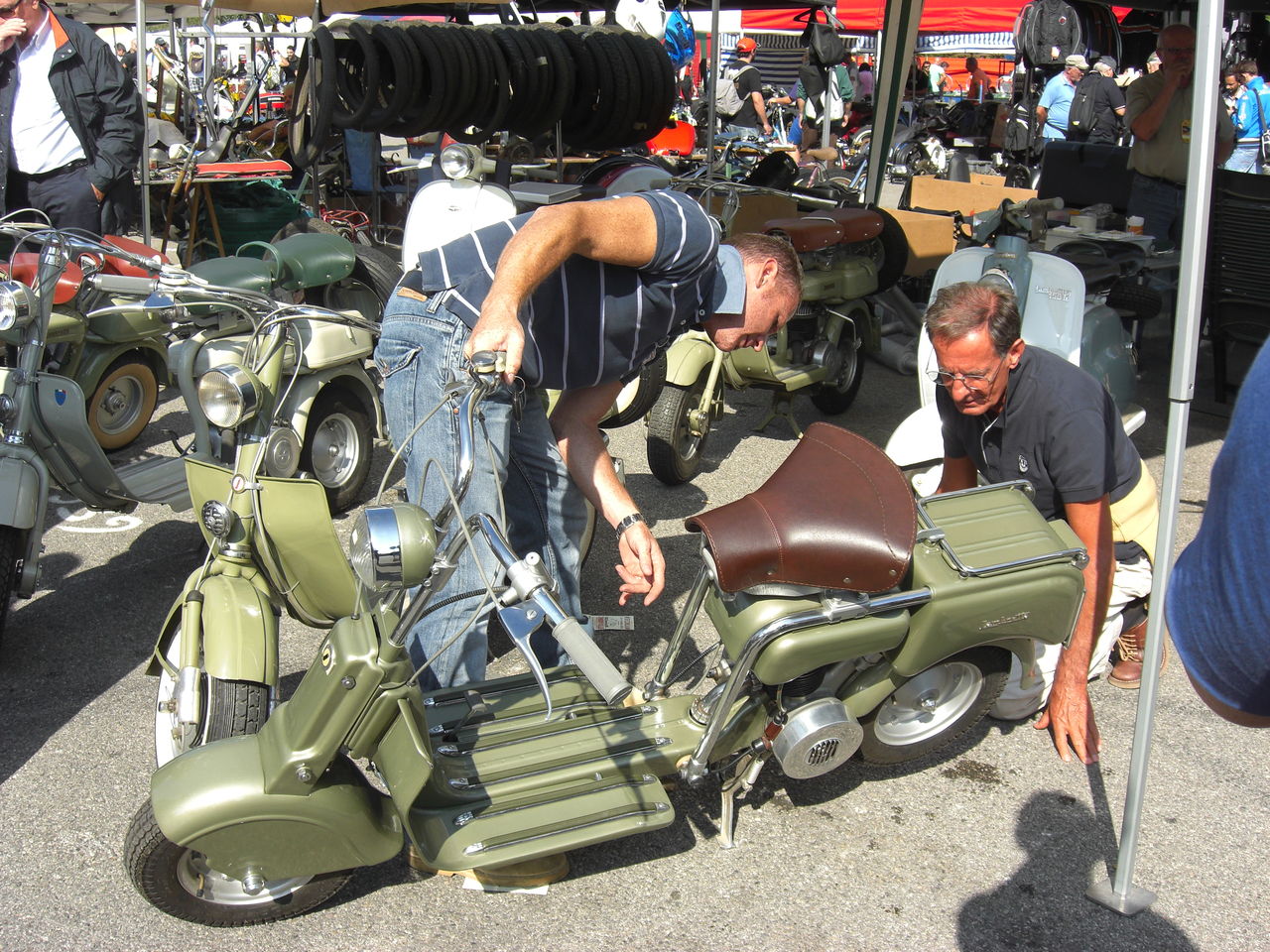 GPZの隣に写っているのは、Yさん(通称Yマネージャー)の凝りに凝った改造VESPA PK のフレームで、