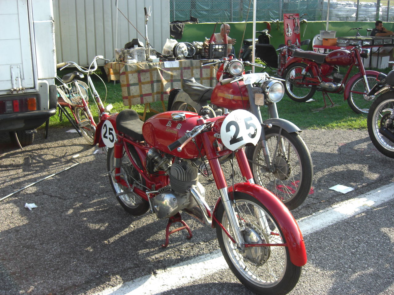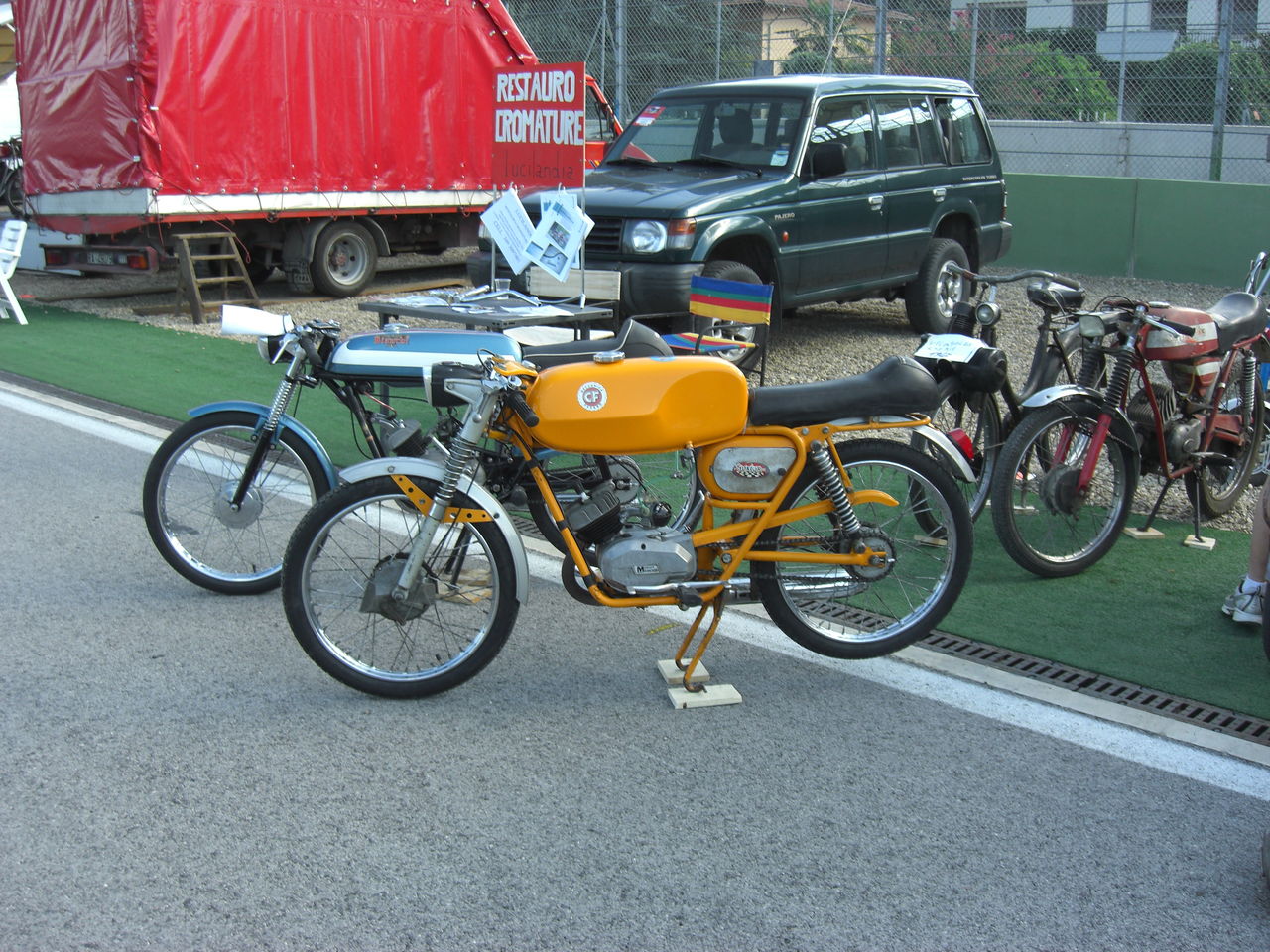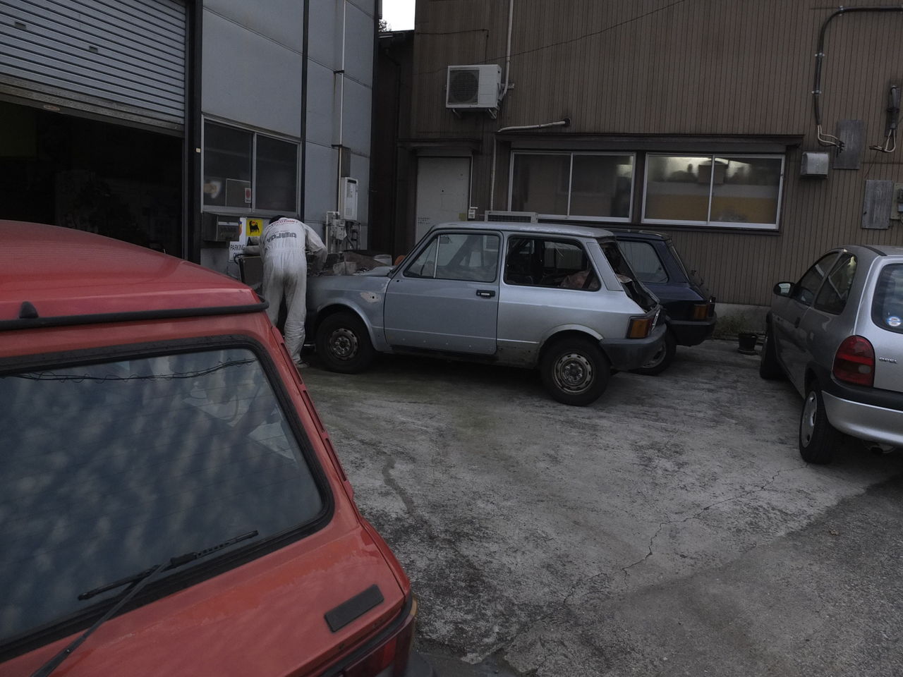 まあ、そのほか、バルケッタならぬ、こんな2シーターもメンテて入っておりまして、パーキングは賑やか。
