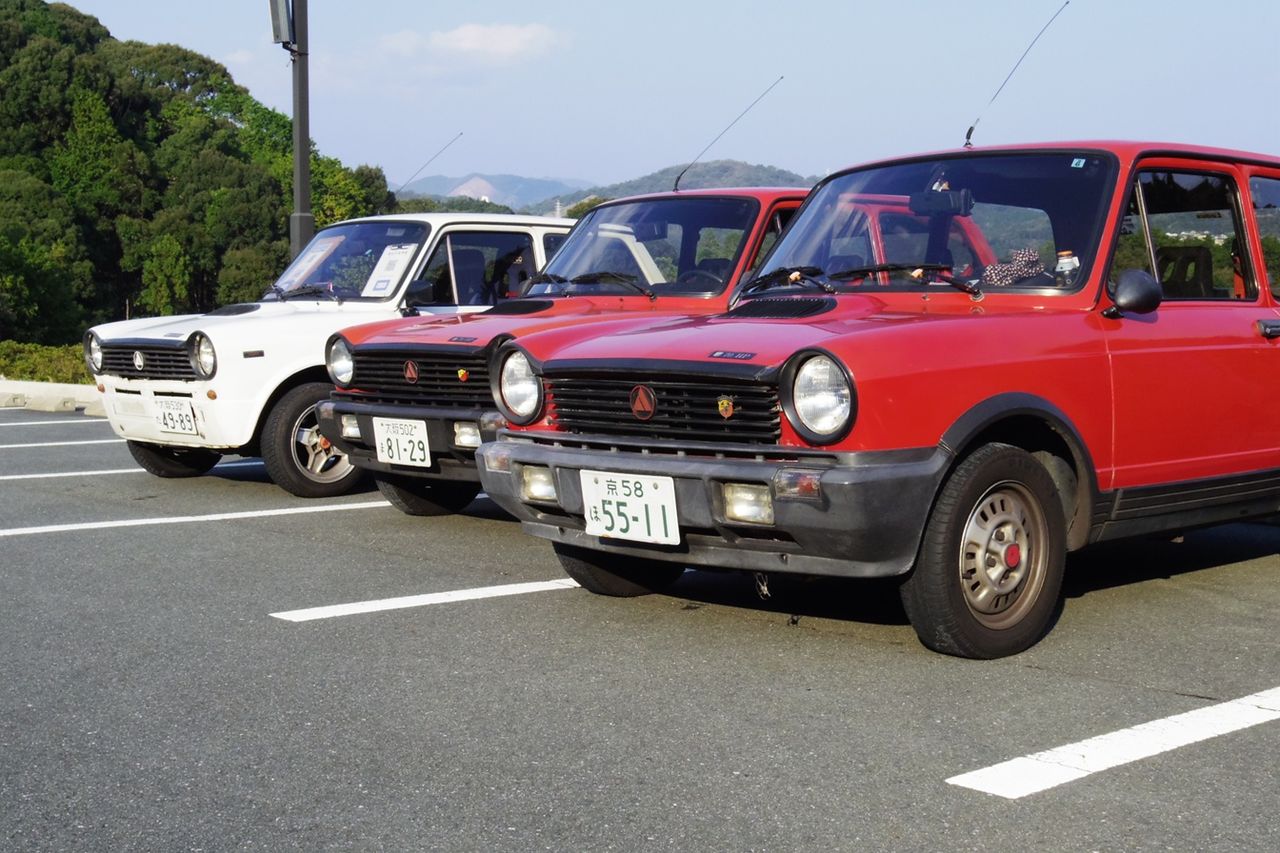 先週末ですが、あれこれ、お洒落な車から、アクの強い車まで、色々あつまって来た夕暮れ風景です。