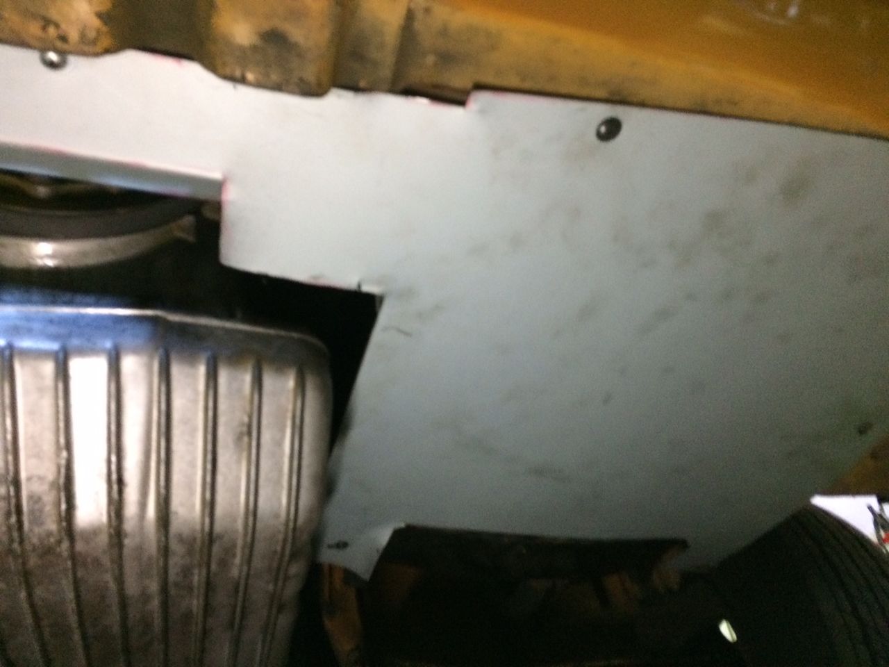 これで、温風はエンジンの下を流れオーバーヒートがなくなります