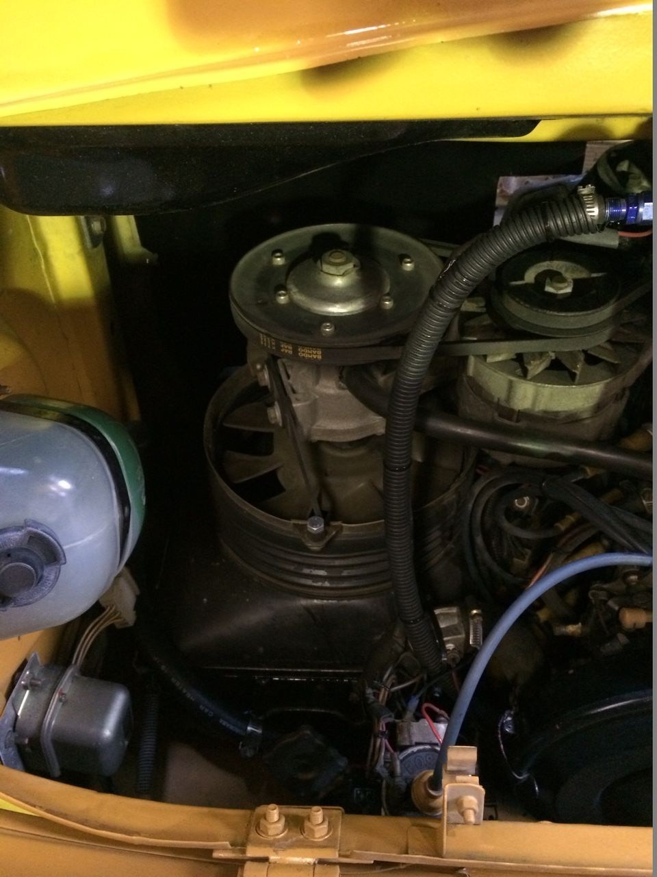 何故か、その温風をガードが取り外されています。多分イタリアのアンちゃん工員が、エンジンを降ろした後にめんどくさがって点けなかったのかな?笑