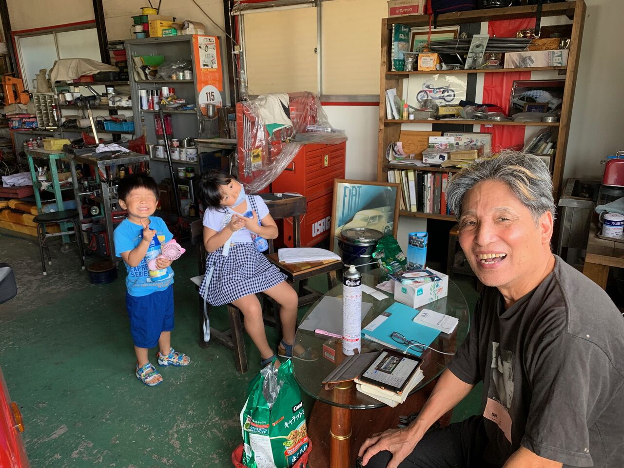 ガレージは大賑わい