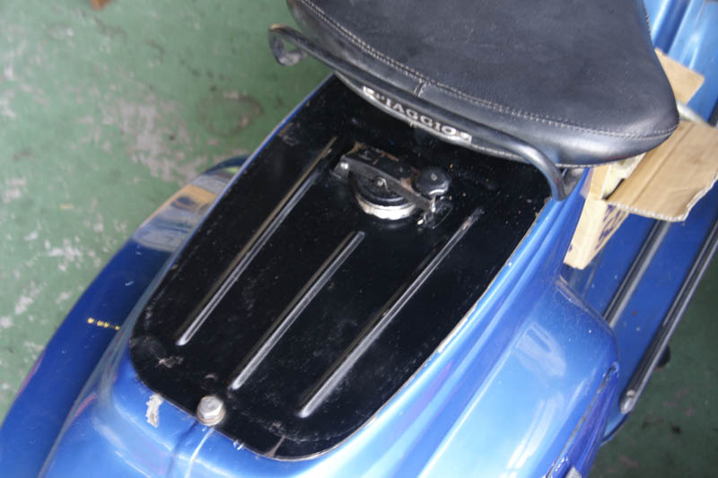 さびさびタンクを、M隊員が発掘したVESPA100の中古タンクと交換しました。形状はほとんど同じで、ボルト留め穴を多少ヤスッて完了。