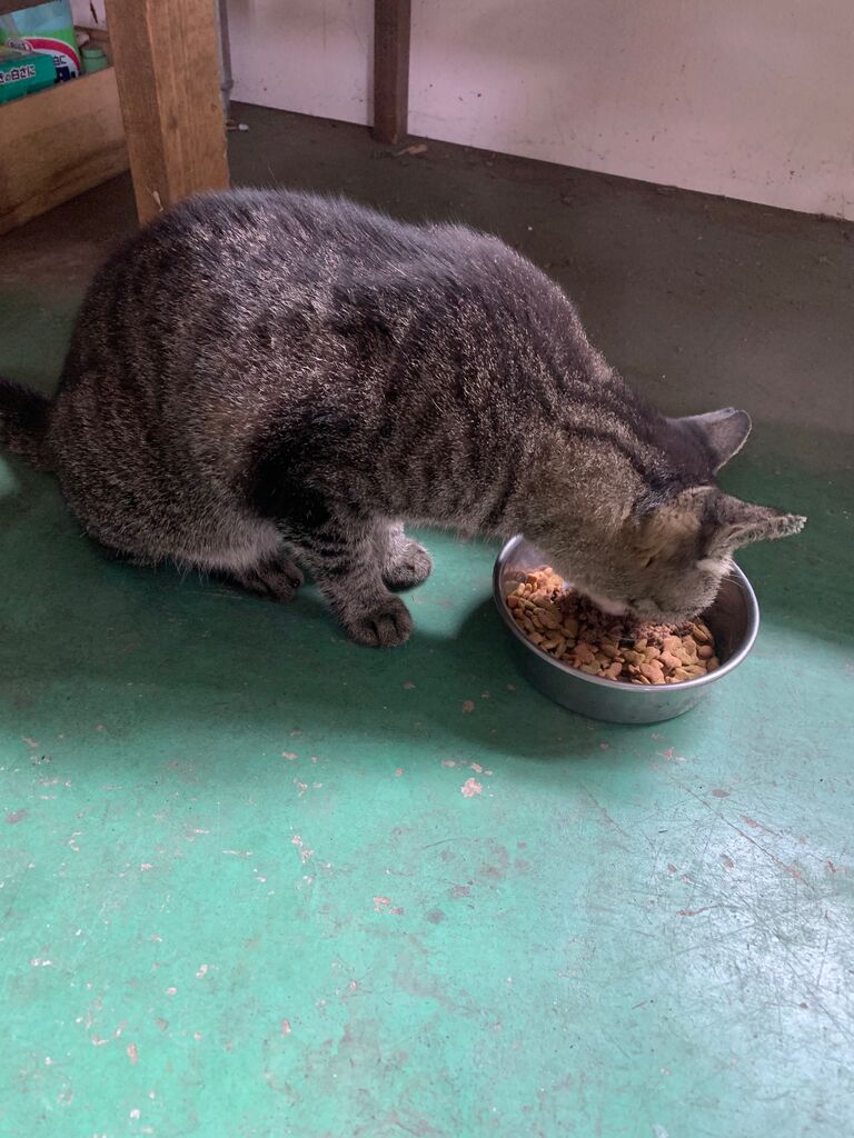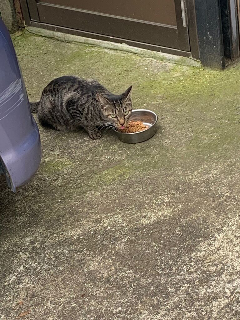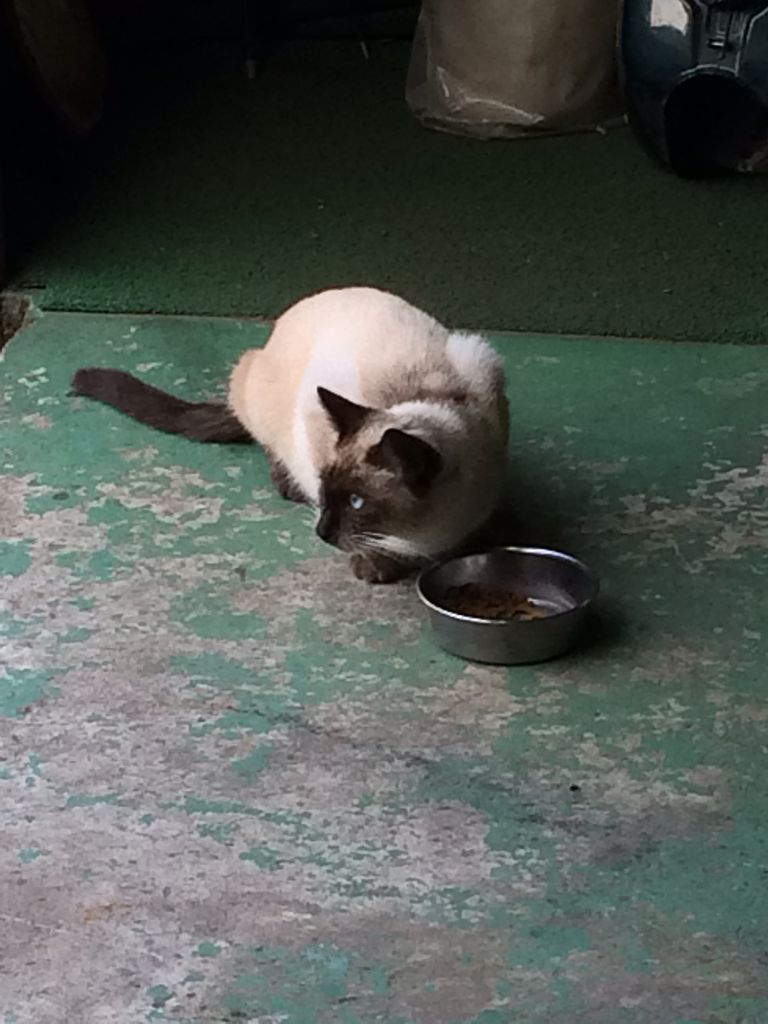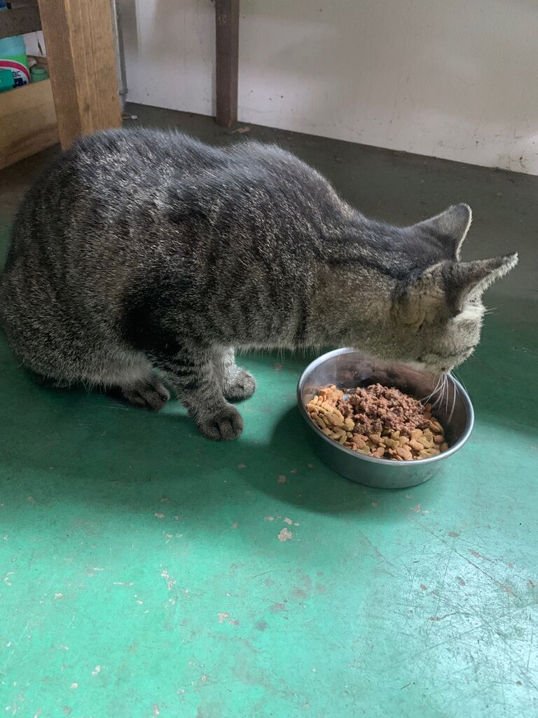 躾も良く、ご飯を「ニャ〜〜」とおねだりし、ヤジマの差し出すご飯を物怖じせず食べます。