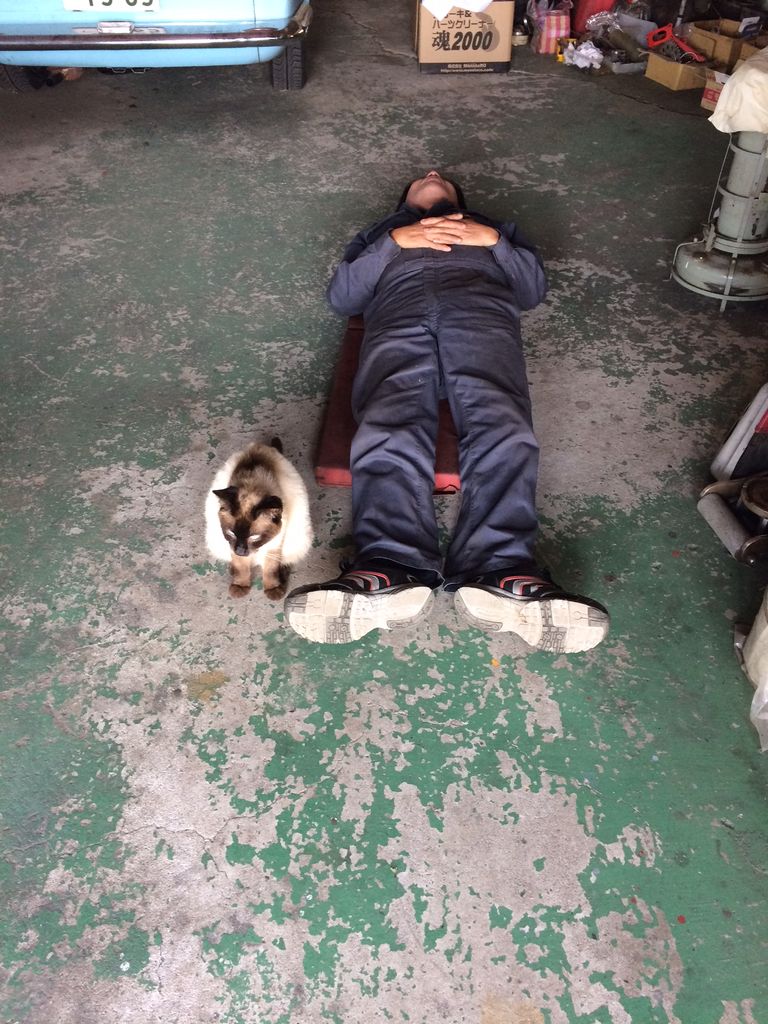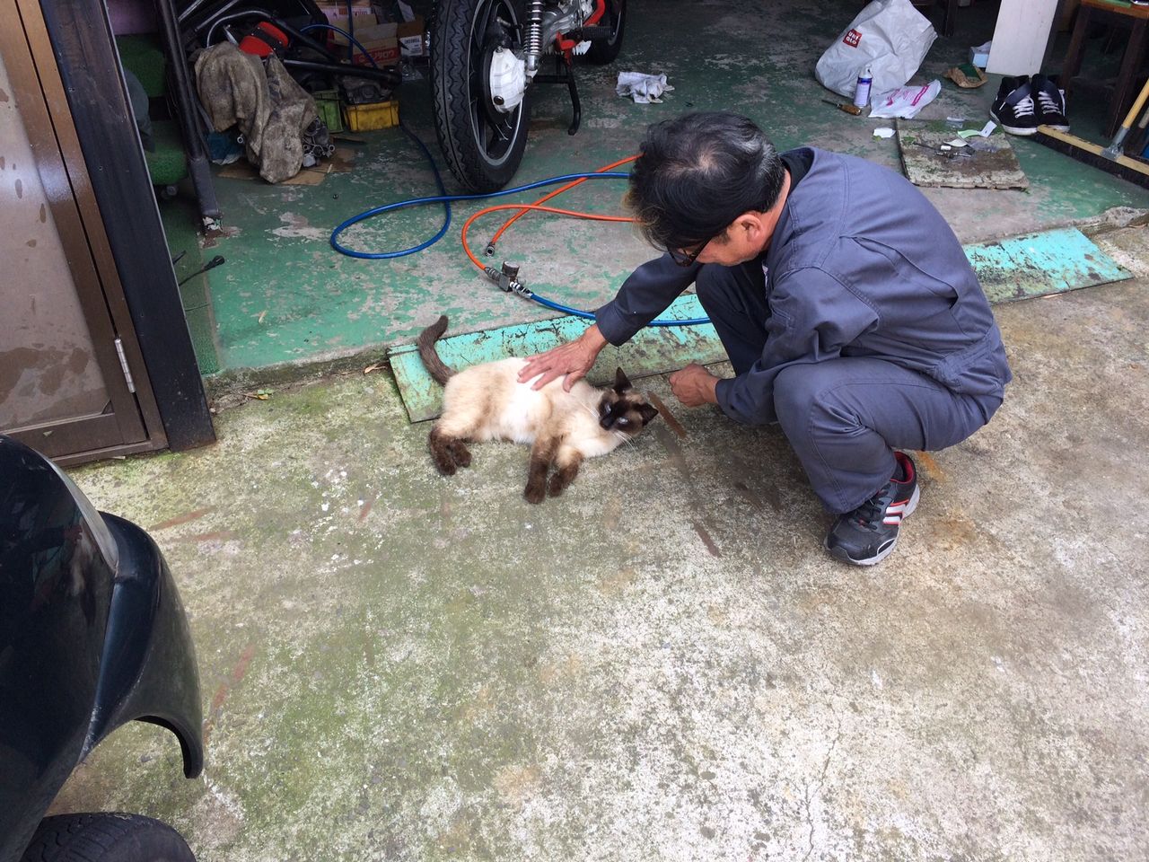 世間では大型10連休の黄金週間なんで言われていますが、新吉田のガレージでは、孤独な老人とまち猫がマッタリしています