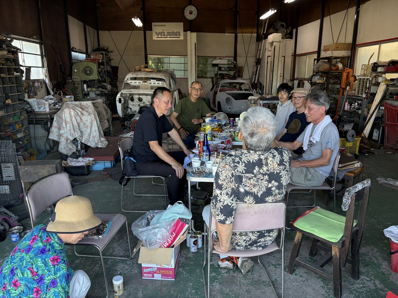今年のガレージパーティーは40℃に迫る猛暑の中ワイワイにぎやかに開催しました