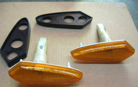 さて、Yさんの たっての希望により、サイドフラッシャーランプを 初期のA112が採用していた 「フェラーリでも使用していたイプ」に変更することにしました。ガレージに在庫があったはずなのですが、捜索するのが大変なので、たまたまM隊員がアメリカで1組だけ運良く発見し発注したので、、それを使用する予定です。