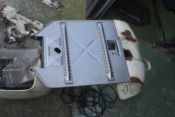 腐ったA112の修理に比べれば簡単なのですが・・・・この程度でヘバル隊員。部分的に腐った車のレストアは大変な事を思い知るの図。腐ったフロアパネルを完全削除するオペ。
