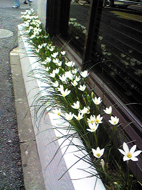 アバスクの窓に外に植わっている植物、昨年の11月のオープン以来ずっと草だけだったのですが最近ようやく咲きはじめてきました。