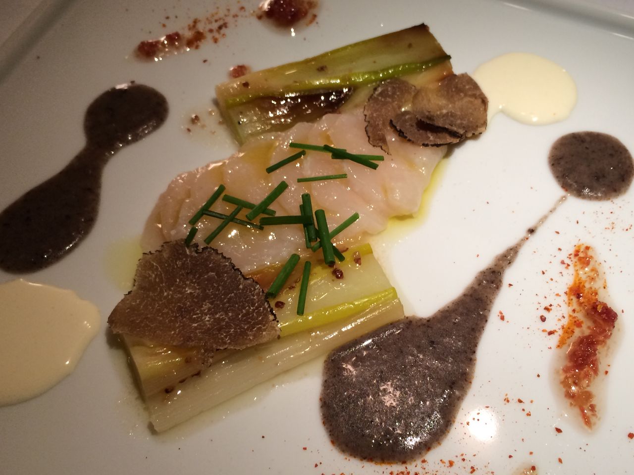 活帆立貝と下仁田ネギのエスカリバーダトリュフのヴィネグレット