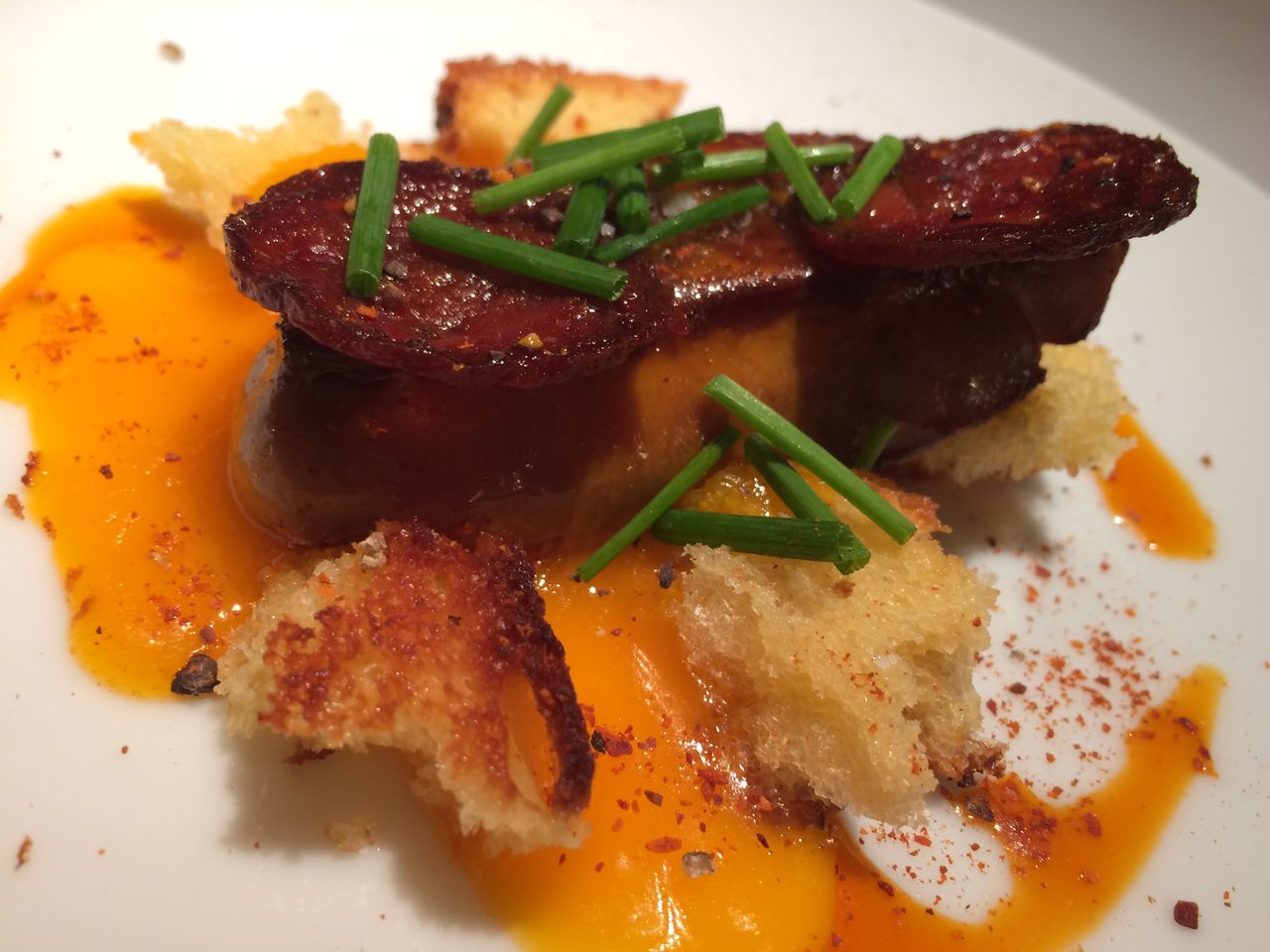 鴨フォアグラのソテー ミガス仕立て