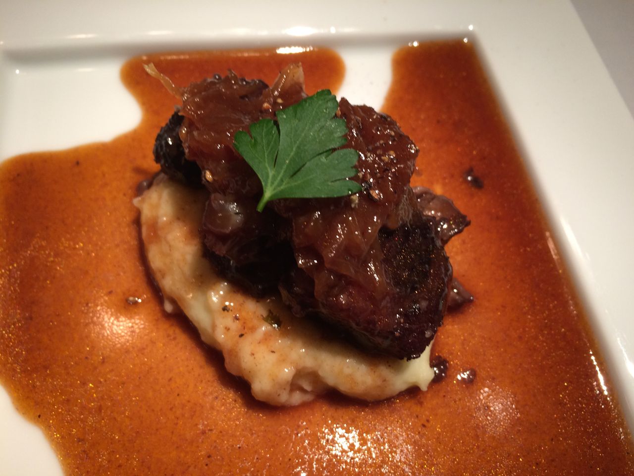牛テール赤ワイン煮込のクレピネットジャガイモのピューレ