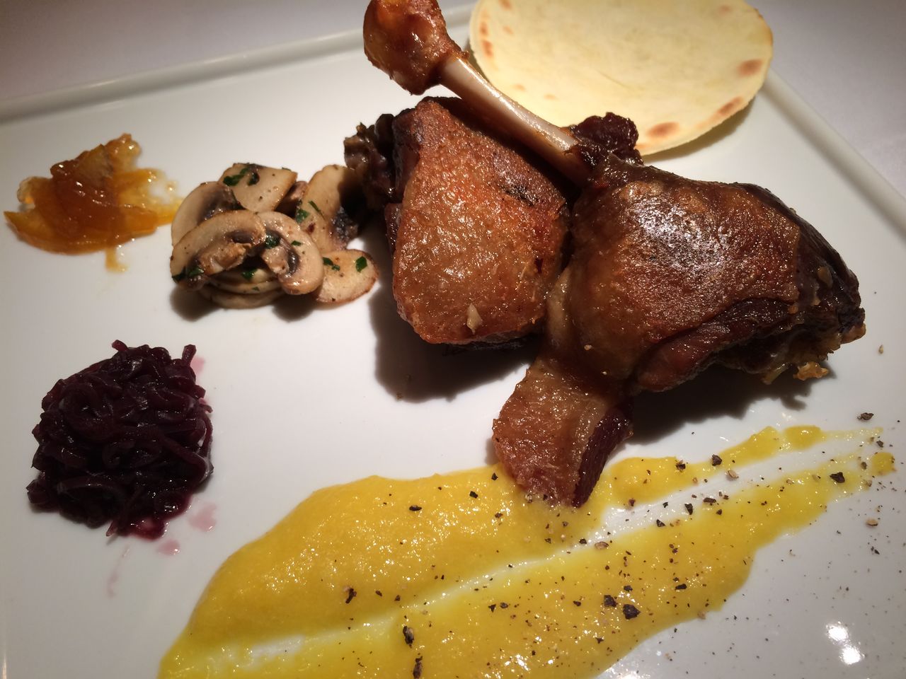 ケベック産鴨腿肉のコンフィ タロア添え