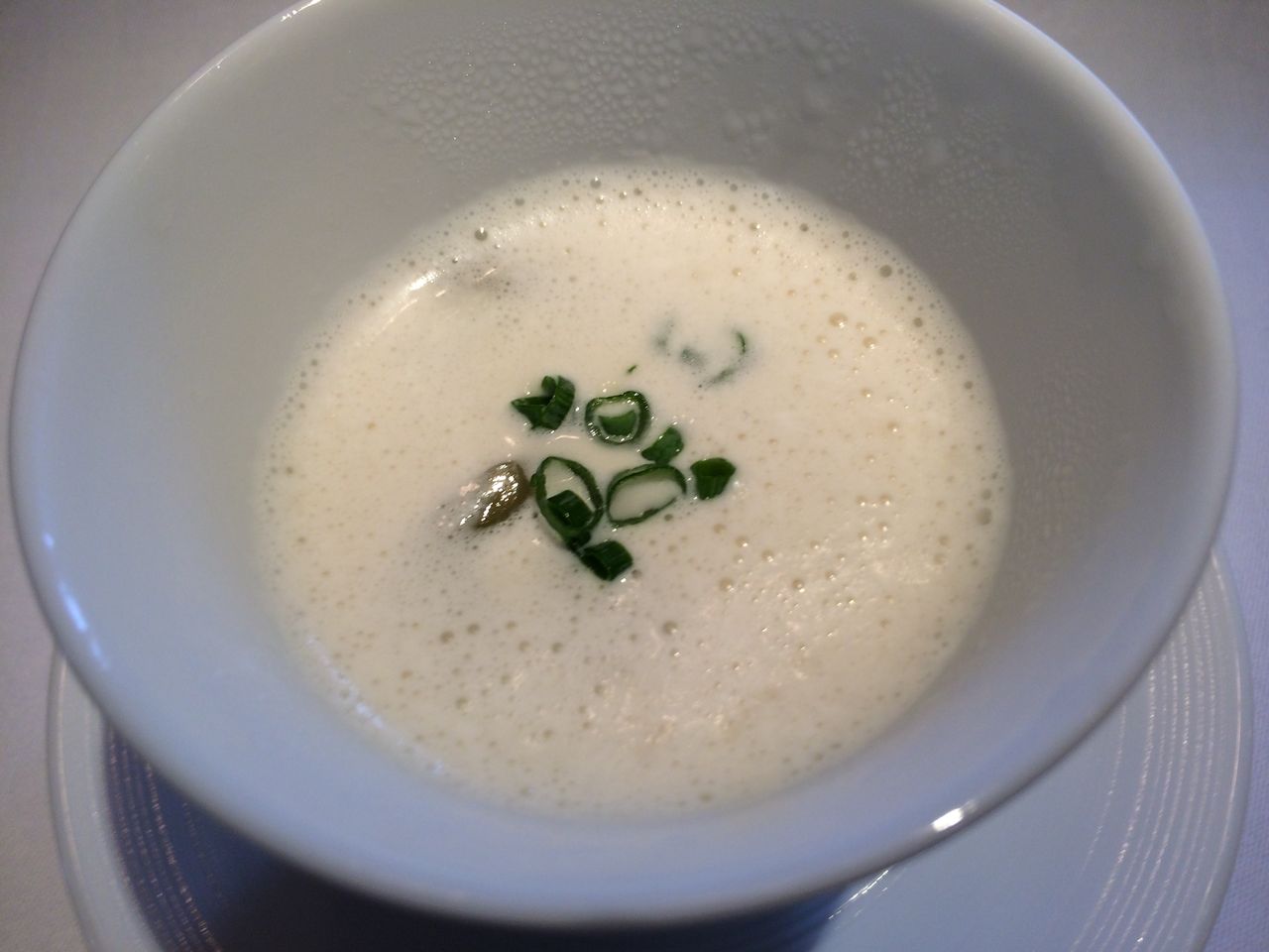 冷製アーモンドのスープとフォアグラのフラン