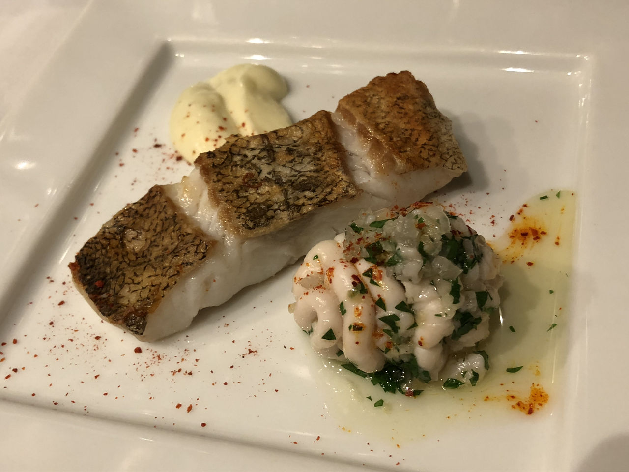 塩鱈のポワレ ピルピルソース白子のにんにくパセリ