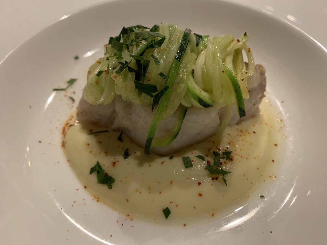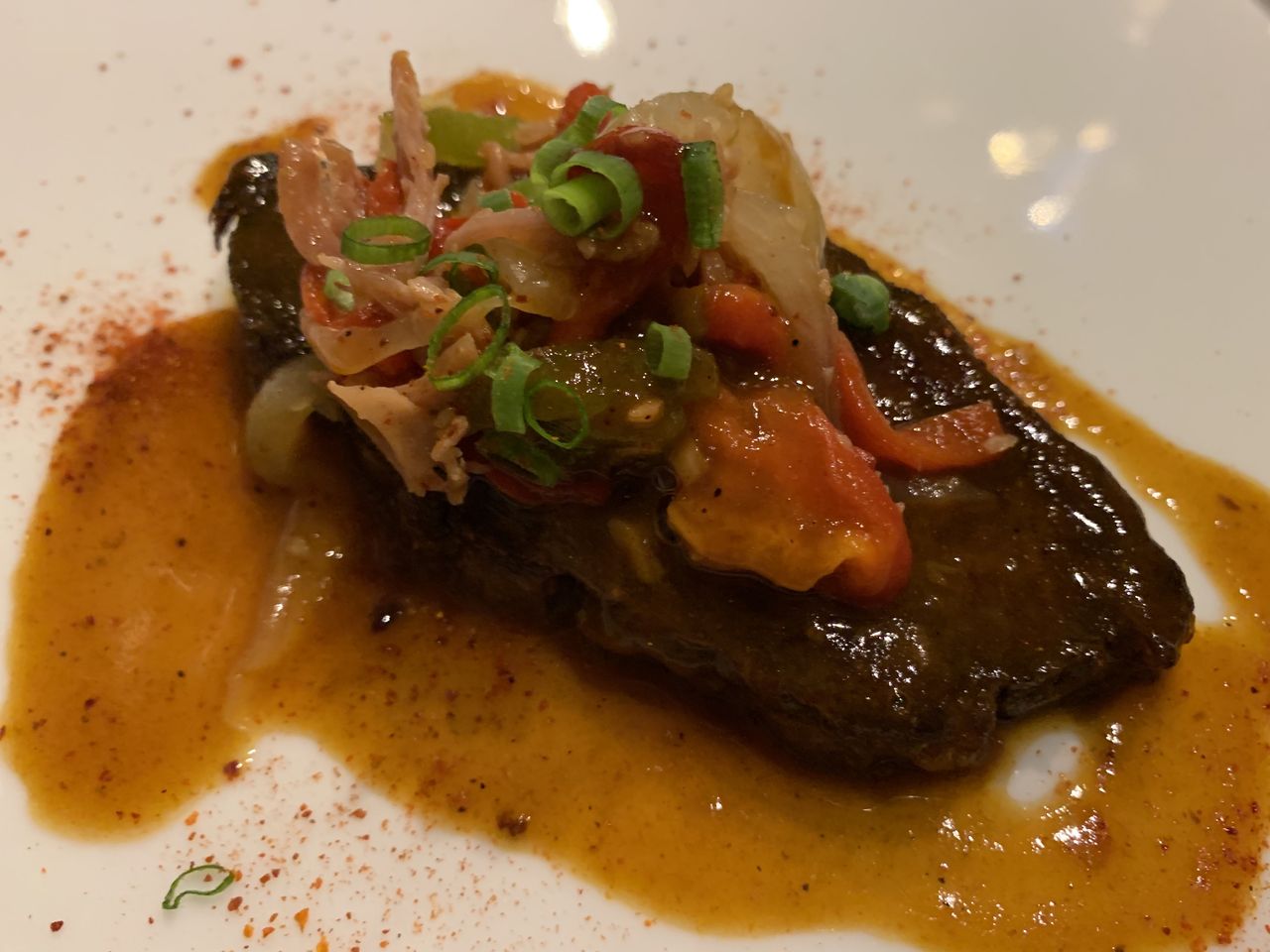 子イカのファルシ(焼き茄子・ジロール茸)イカスミ ピストゥソース