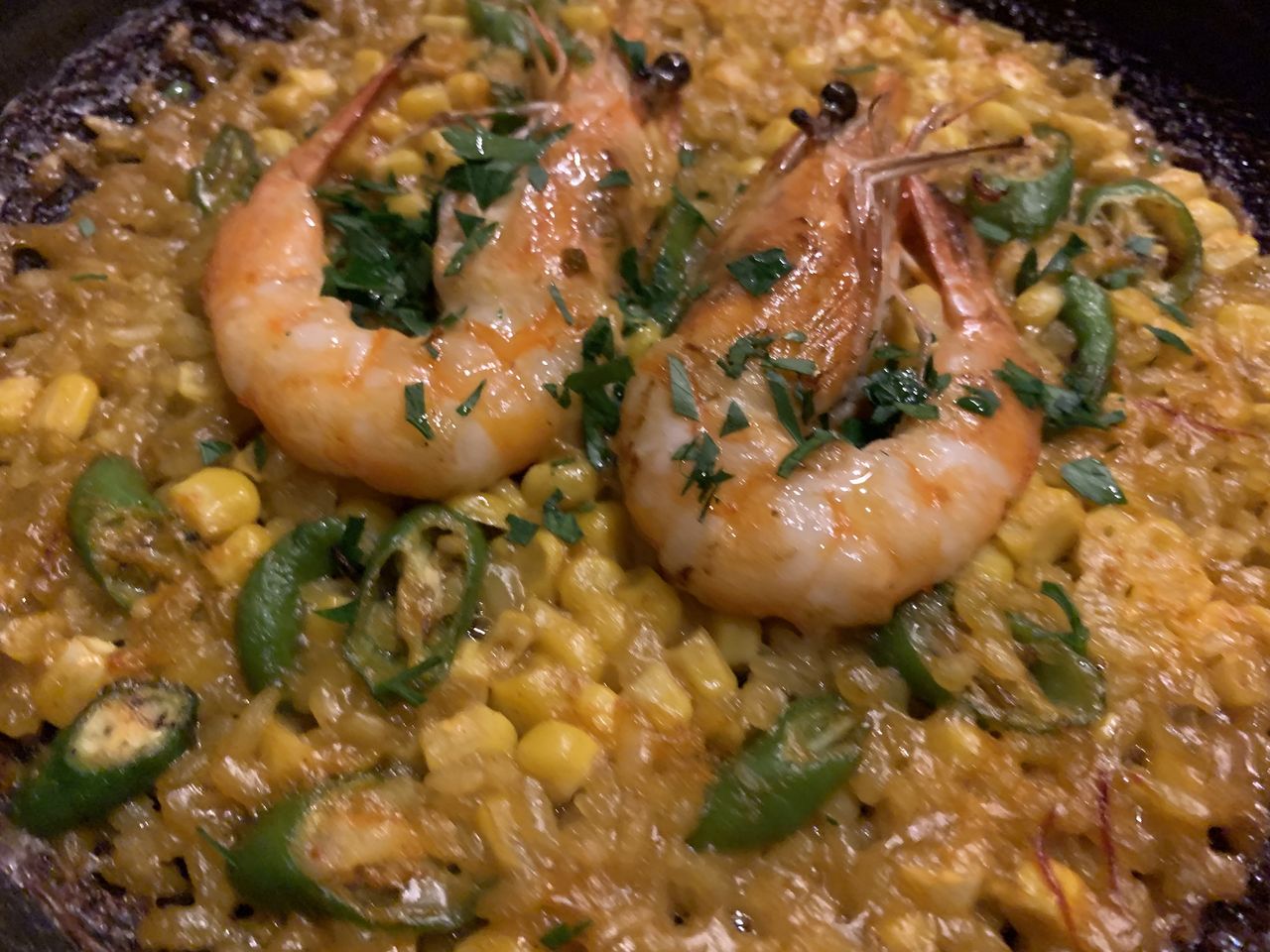 天使の海老 とうもろこし甘長とうがらしのパエリア