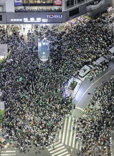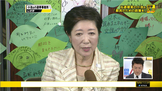 NHKの開票速報で小池氏の当確が報じられた午後8時から約20分後、鳥越氏は都内の事務所に姿を見せた。