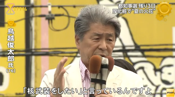 「あの人は、厚化粧の人だけではないんですよ。『核武装をしたい』と言ってるんですよ」