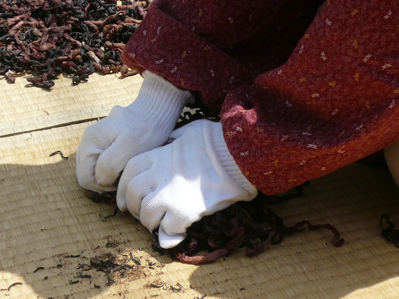 乾燥もただ干すのではなく、もみながら乾燥させます。