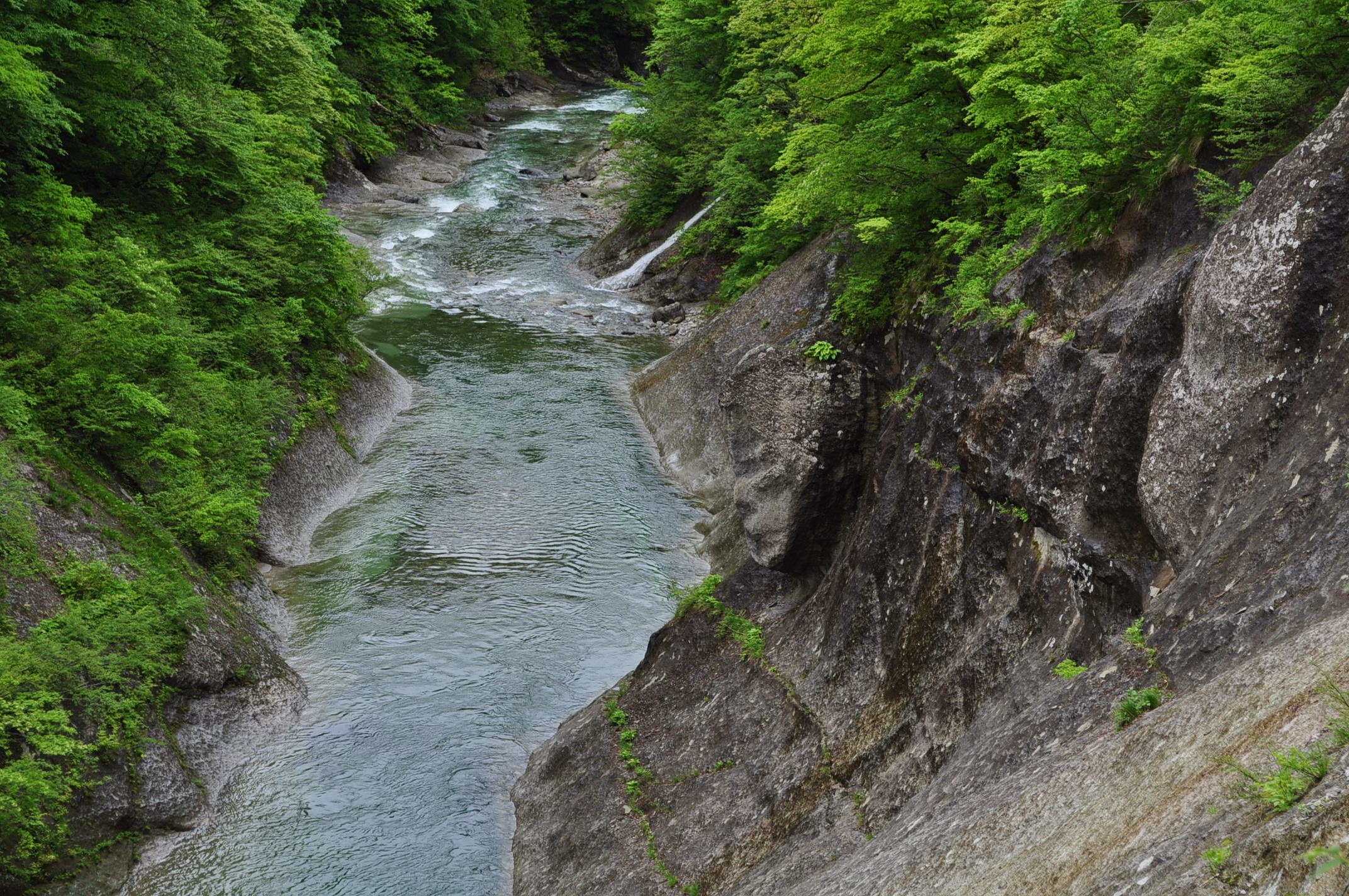 皆瀬川本流は、崖のずっと下を流れているのですが、