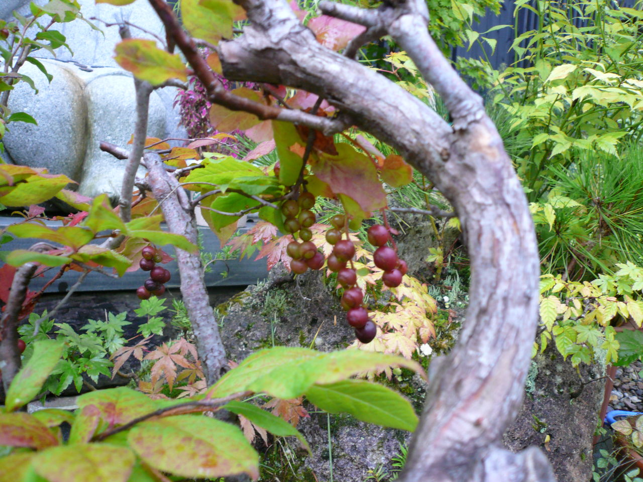 玄関入口わきの‘なつはぜ’と露天風呂通路のがけの‘がまずみ’です。