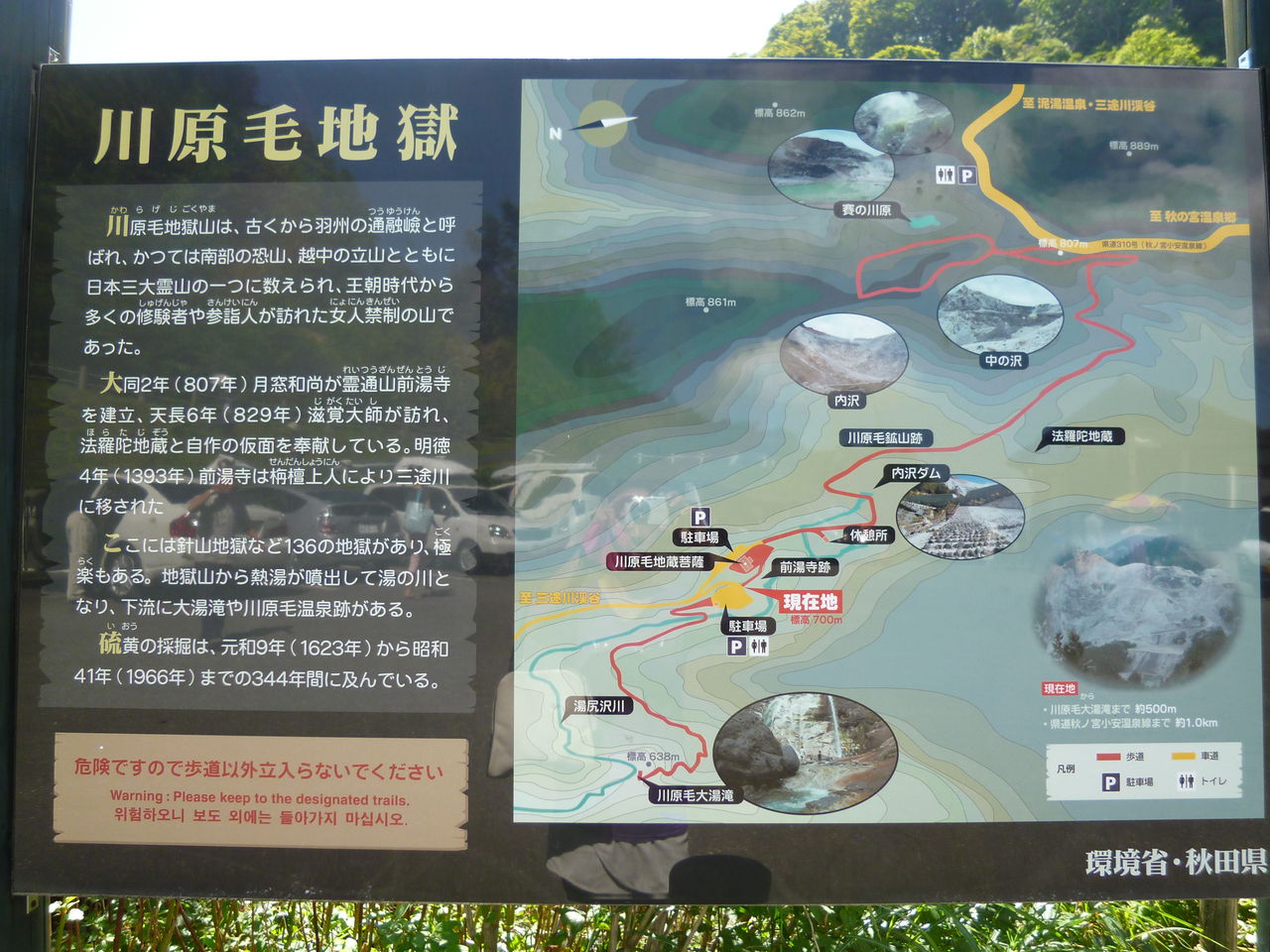 川原毛地獄の遊歩道は、現在工事中のため、10月末まで歩けません。
