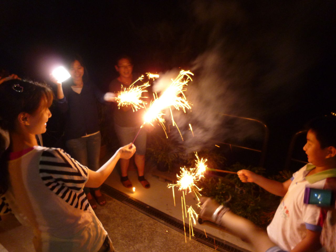 到着時間が遅かったので会食は出来ず、夕食後に花火をしました。