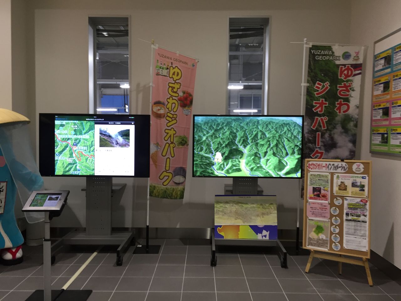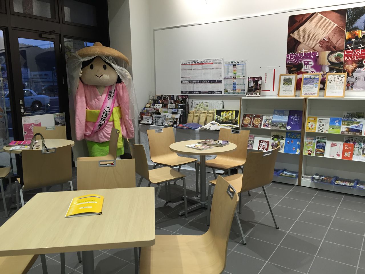 こちらの案内所は、ジオガイドのメンバーが日替わりで居ますので、湯沢や近隣の情報やジオパークのお話など、何でもご案内しています。