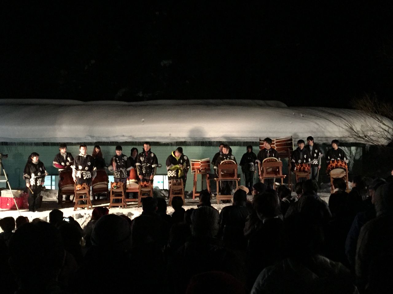 ゆきとぴあ七曲での太鼓演奏は、長谷山邸付近で19:15頃からの開始となります。