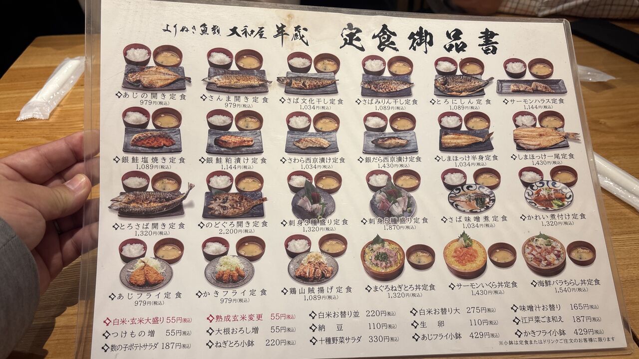 焼魚・煮魚・お刺身・揚げ物といろんな食べ方で魚介を楽しめますが、選んだのは大好物さば文化干し定食。