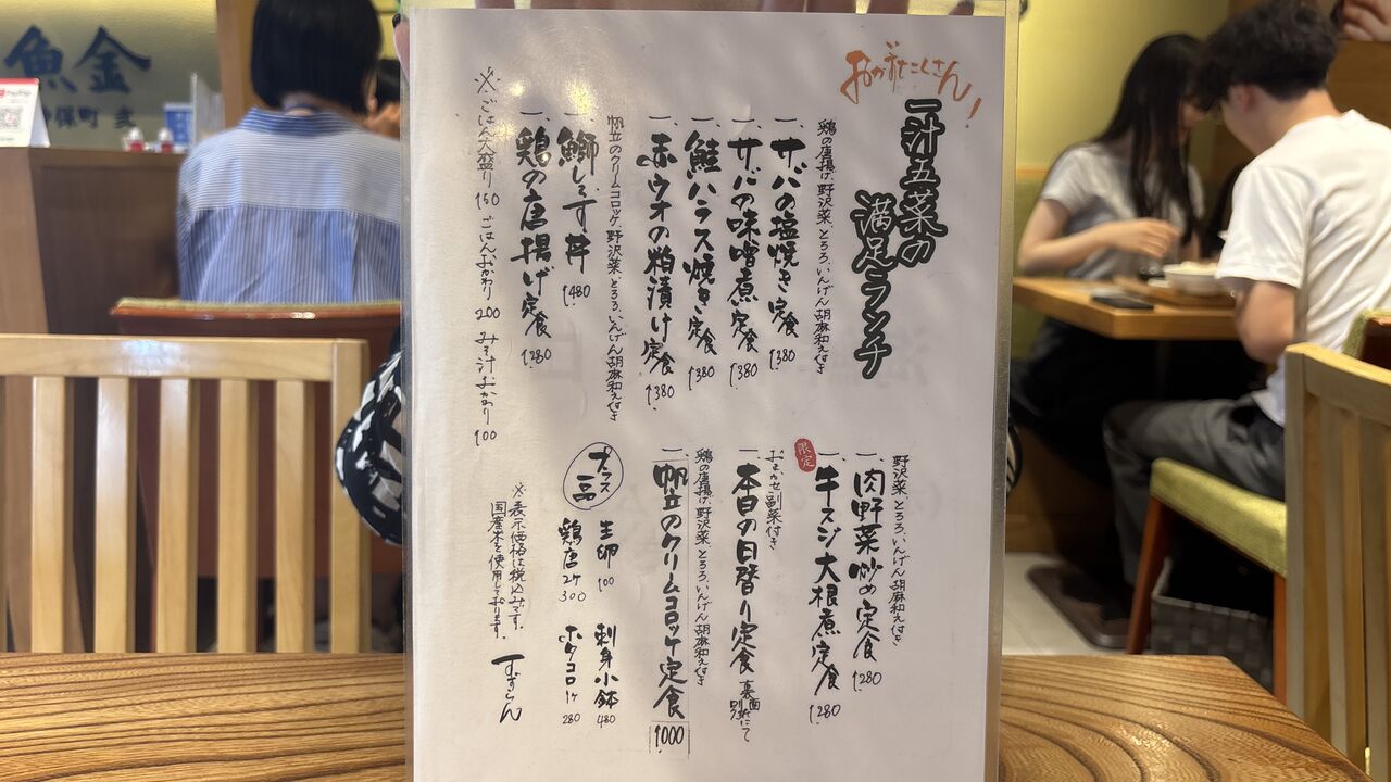 東京・神保町。美味しい魚料理が安定して食べれる魚金のランチ。肉野菜炒め定食1,280円をご紹介。今日は麺類じゃ無く、ご飯が食べたいなぁ〜と入った魚金。何を食べるか決めて入った訳ではありませんが、ここなら外れ無しかな。と入店。お昼時はいつも大混雑ですが、今日はタイミングよく待つ事無く入店。さて何食べようか?とメニューを眺めると、焼魚を中心としたお魚メニューに加え揚げ物・どんぶりなど品数多め。ここは当然焼魚。