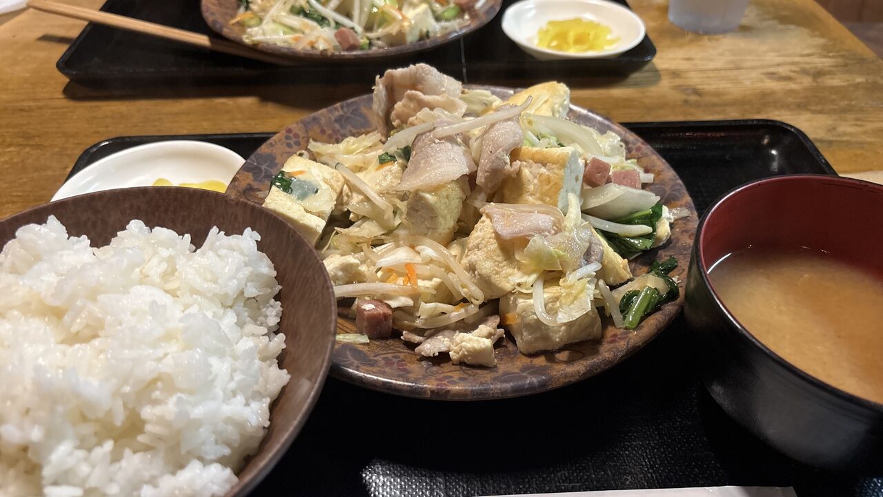 普段はあまり頼まないメニューですが、たまにはいいかな?と注文です。約10分で運ばれていますが、とうふチャンプルーは思っていたより具沢山。