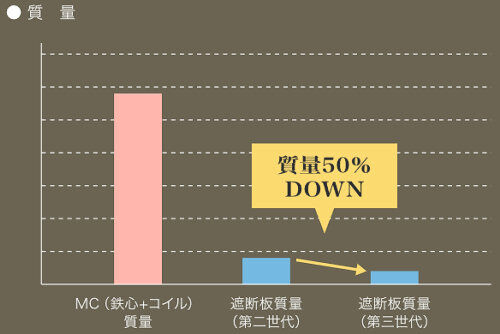 鉄心とコイルの質量の1/10以下の質量となり