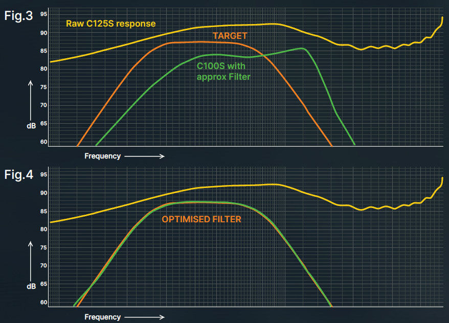 クロスオーバー周波数:125Hz、550Hz、1700Hz、4000Hz
