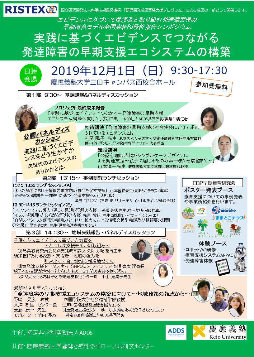 2019/12/1(日)に、私たちが現在取り組んでいる早期療育の全国実装プロジェクトの集大成