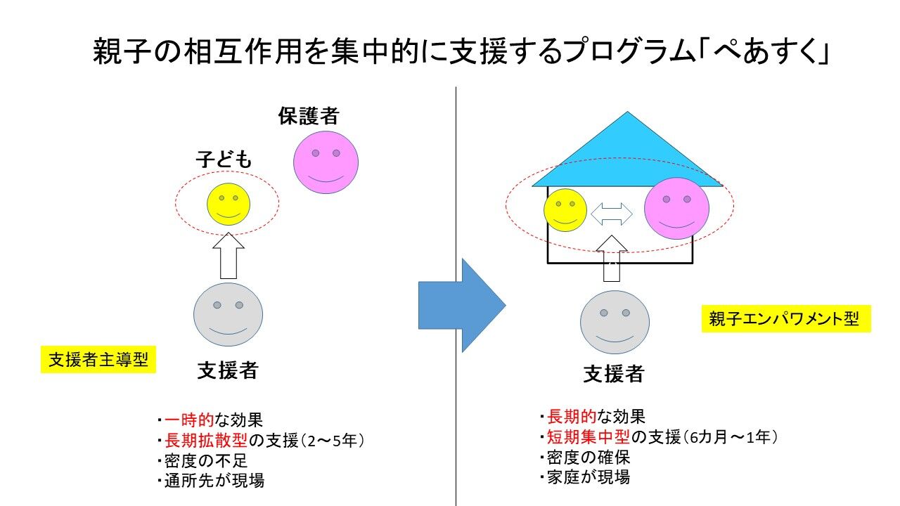 親子の相互作用を6カ月集中的に支援することで、子どもの発達を促進するプログラム。