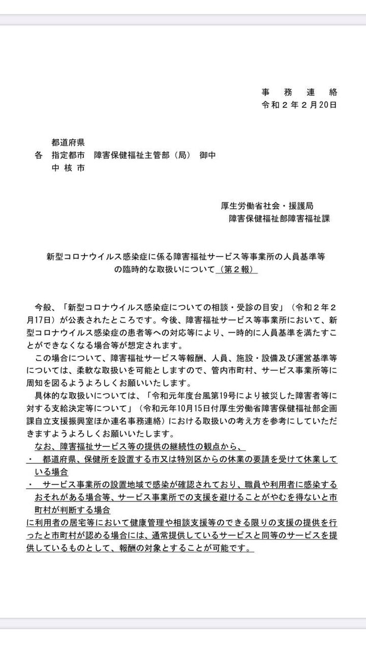 →こんかいの通知に関しては、学校の臨時休業がベースになっているので放課後等デイサービスのみが対象となります。