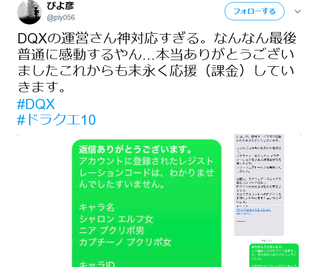 DQXの運営さん神対応すぎる。なんなん最後普通に感動するやん…本当ありがとうございましたこれからも末永く応援(課金)していきます。