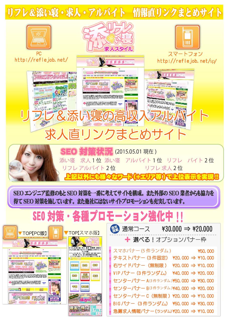 『リフレ/添い寝/求人/アルバイト』のワードを中心にSEO対策を施しています。